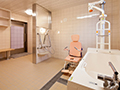 - 地階に浴室給湯・暖房関連機器を格納し、1階部分を浴室としている。RC躯体に蓄熱・保温させる様本館棟同様湿式外断熱を施した。